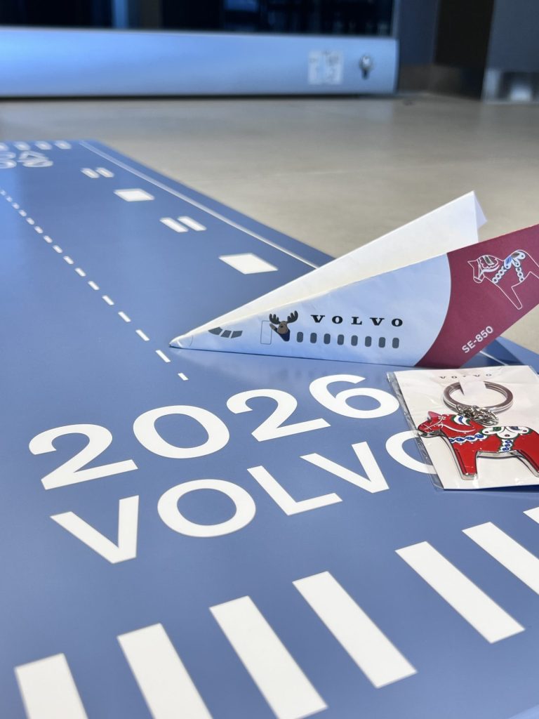 ボルボのオリジナルフライト用紙で紙飛行機を作り、滑走路パネルへ着地させれたらチャレンジ成功です!!